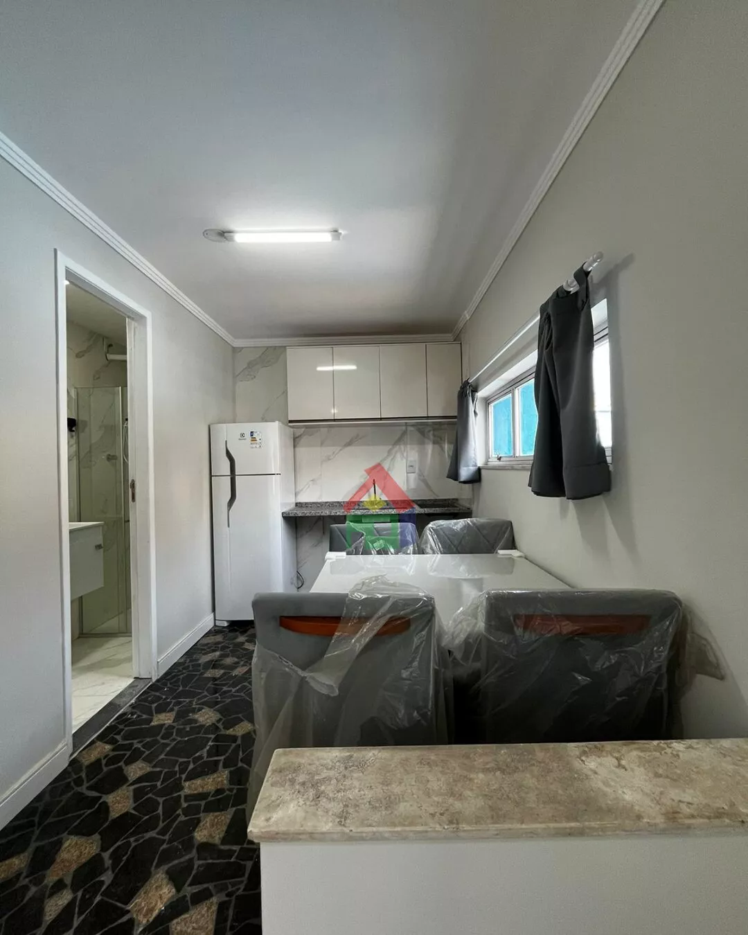 Completamente mobiliada com geladeira, fogão por indução, cama de casal baú com colchão, mesa de jantar com cadeiras e sofá-cama ✨