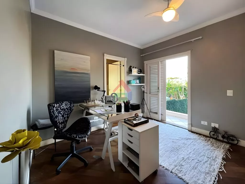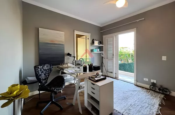 Ideal para quem trabalha em casa, o imóvel conta com escritório no térreo com banheiro completo, podendo funcionar também como suíte de hóspedes. O living com múltiplos ambientes se conecta à varanda, ao jardim e à área de lazer, criando uma atmosfera acolhedora e funcional para o dia a dia e para receber.