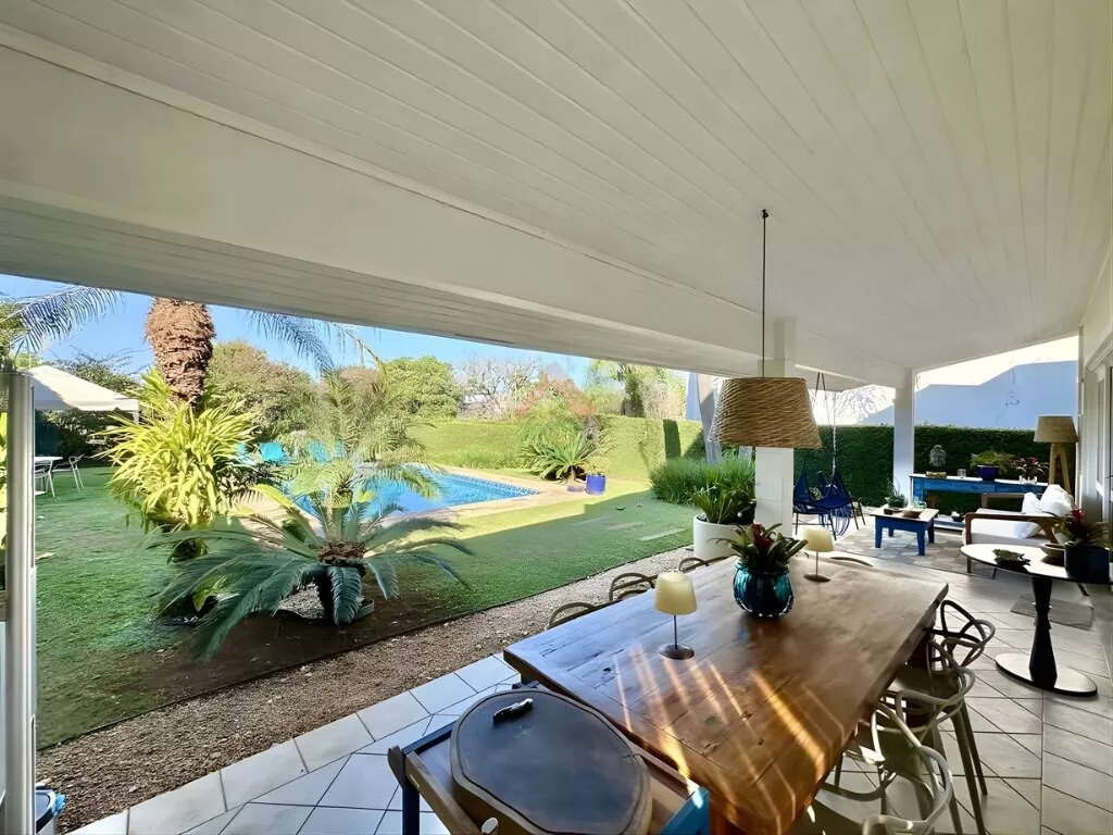 São 4 suítes com terraços e armários planejados, incluindo suíte máster com closet e hidro dupla panorâmica. Cozinha ampla e totalmente equipada, lavanderia independente, piscina com prainha e hidro, praça do fogo, paisagismo formado e garagem para 5 veículos.